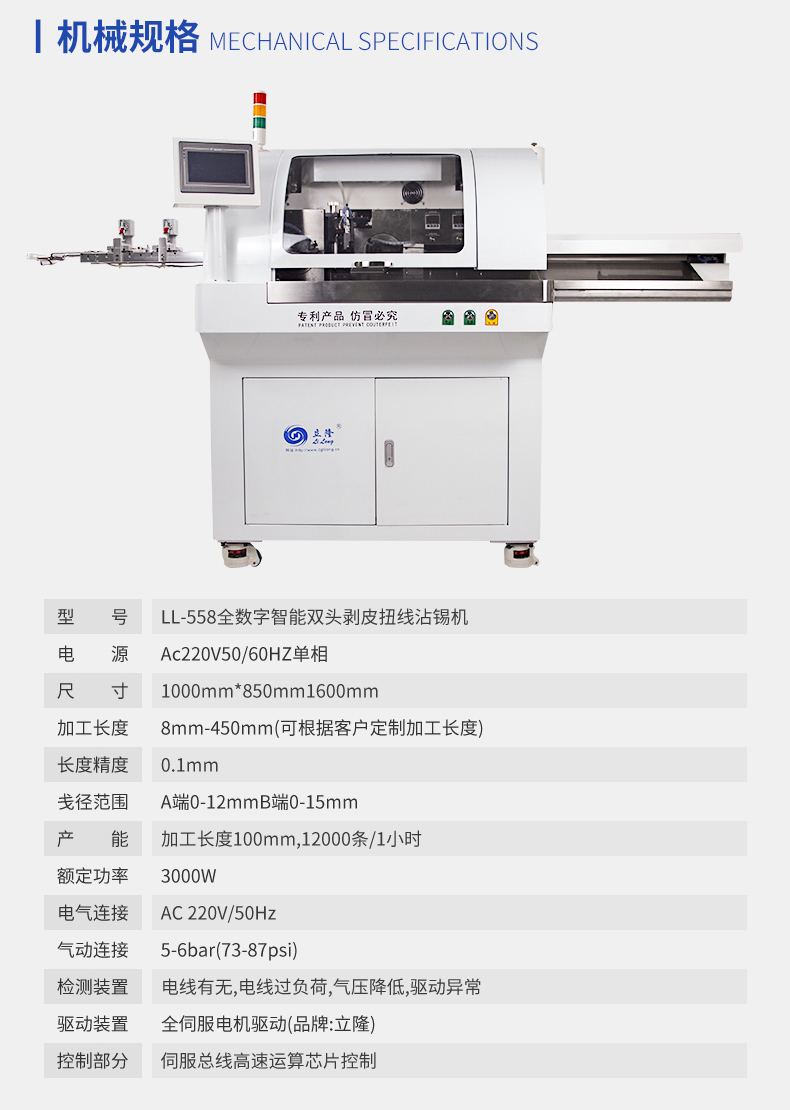 LL-558全數(shù)字智能雙頭剝皮扭線沾錫機(jī)